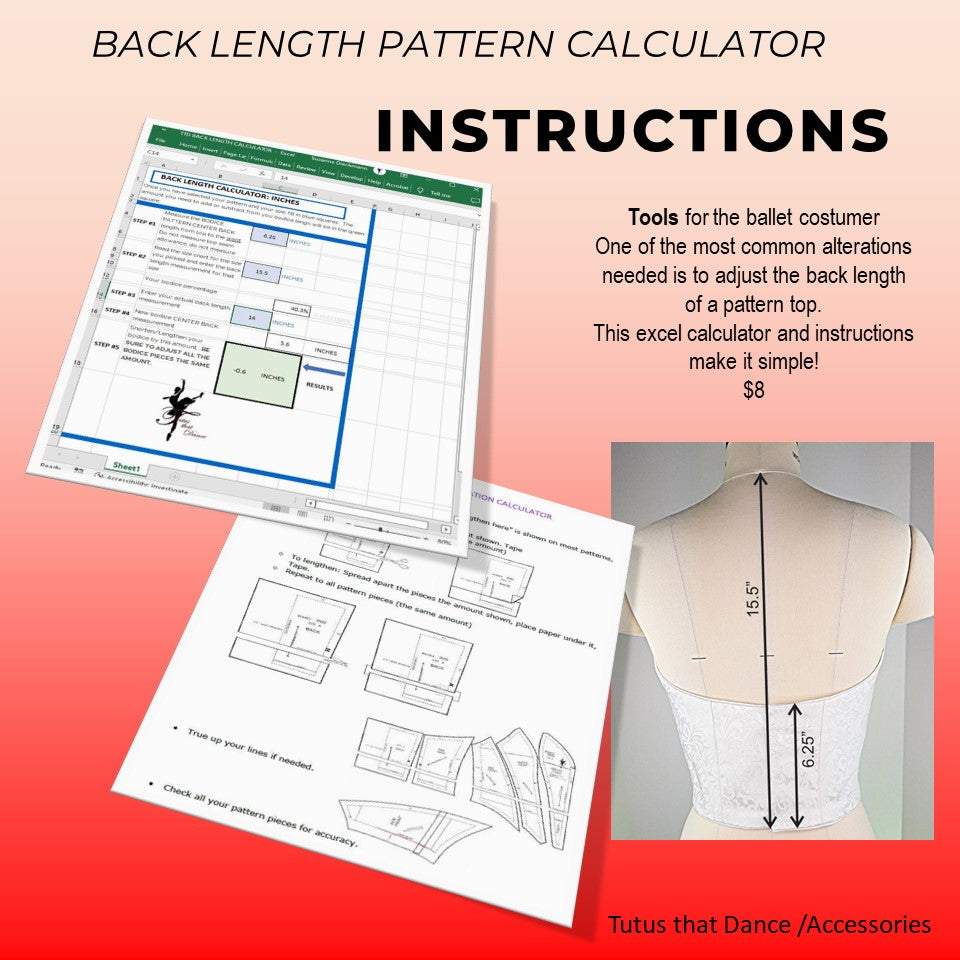 - Quickly shows you how much you need to shorten or lengthen your tutu bodice pattern.