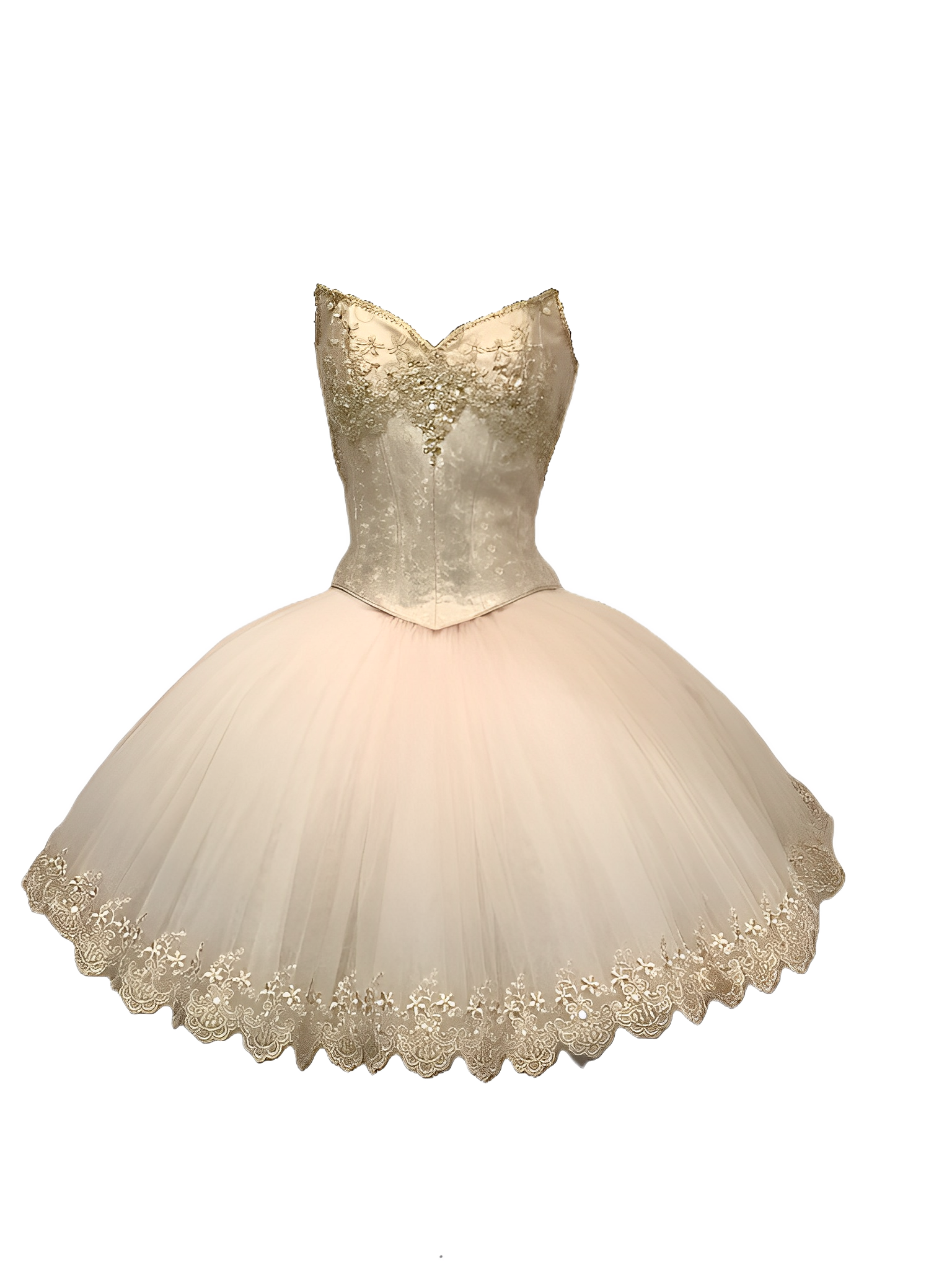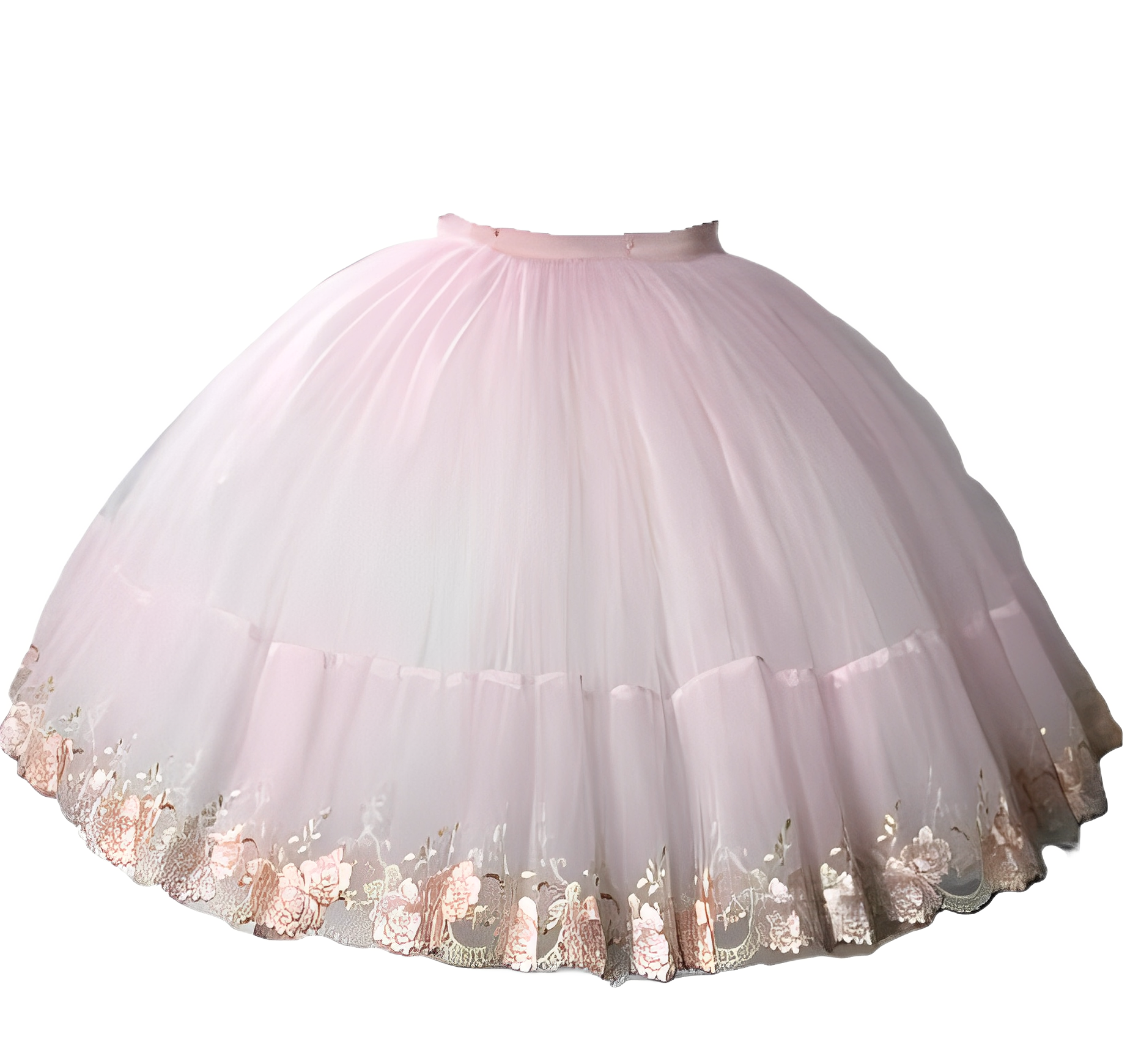 - The skirt is generally longer, bell-shaped, unhooped, with a softer look.
